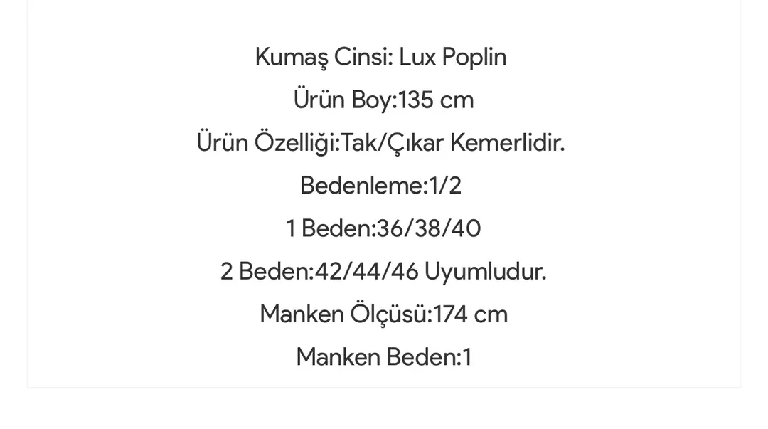 1 Renk 2 Beden